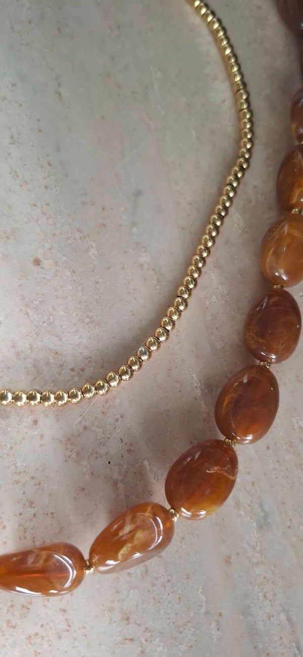 Mooi in combinatie met een gouden of zilveren kralenketting.